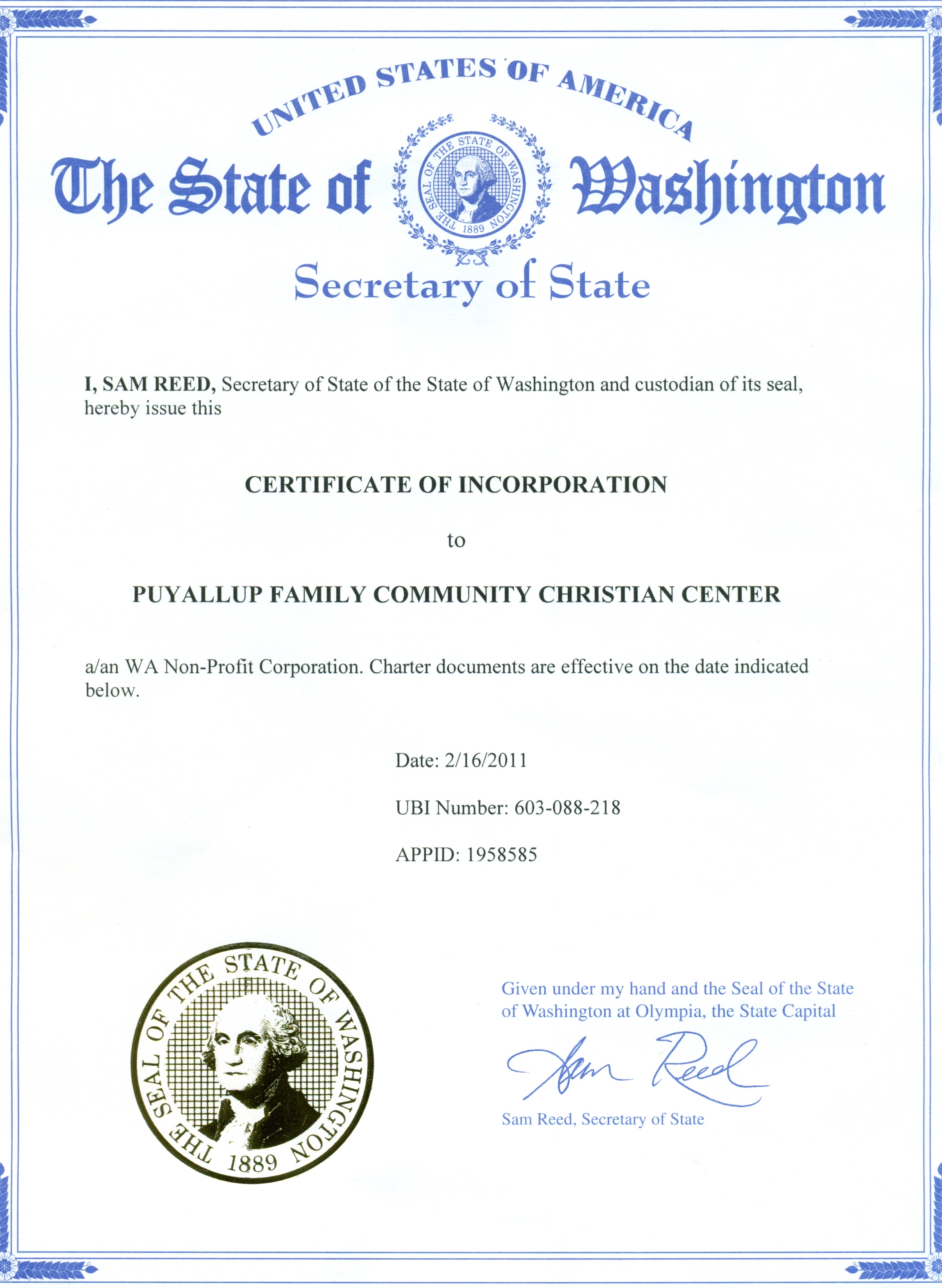 Authorized by the Board of Directors of Puyallup Family Community Christian Center.